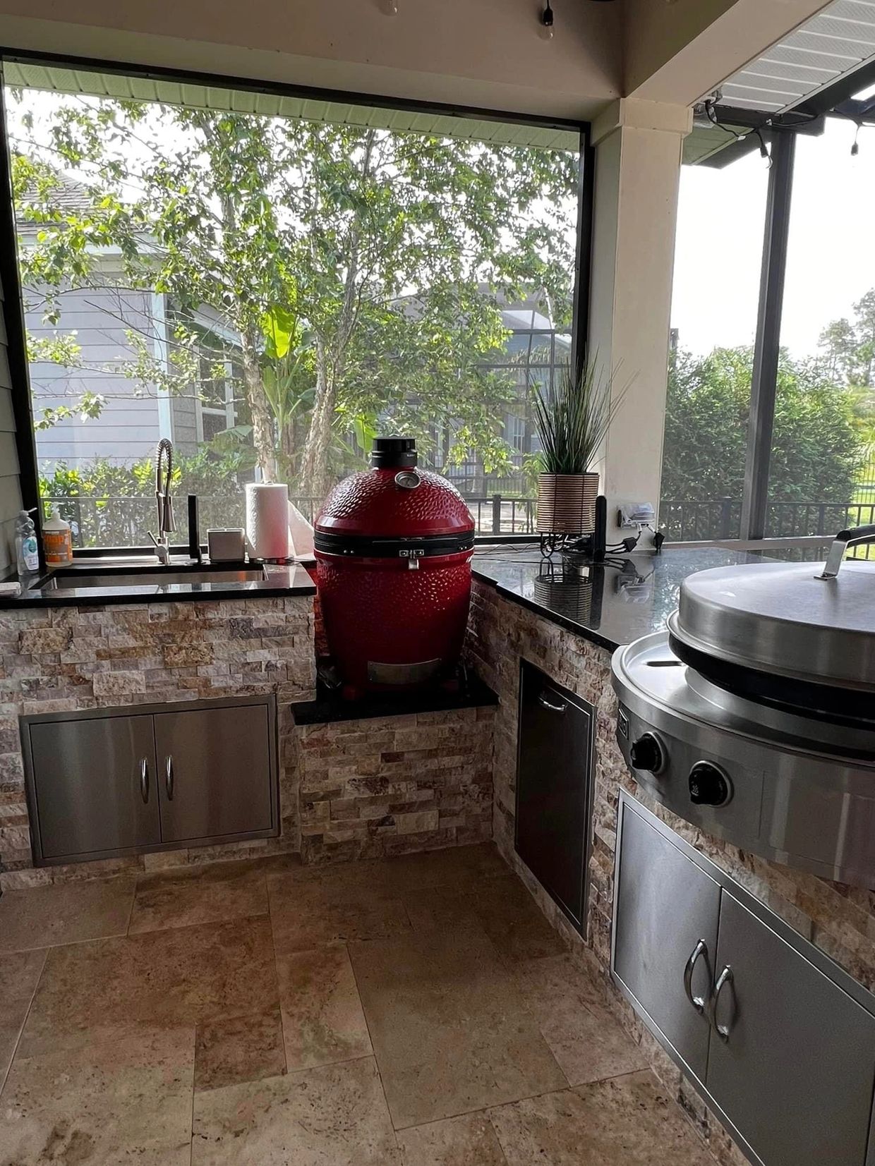 In Florida, outdoor living is a way of life. With year round warm weather and strong culture of entertaining at home, outdoor kitchens have become a coveted feature that we design completely custom and for your unique space.